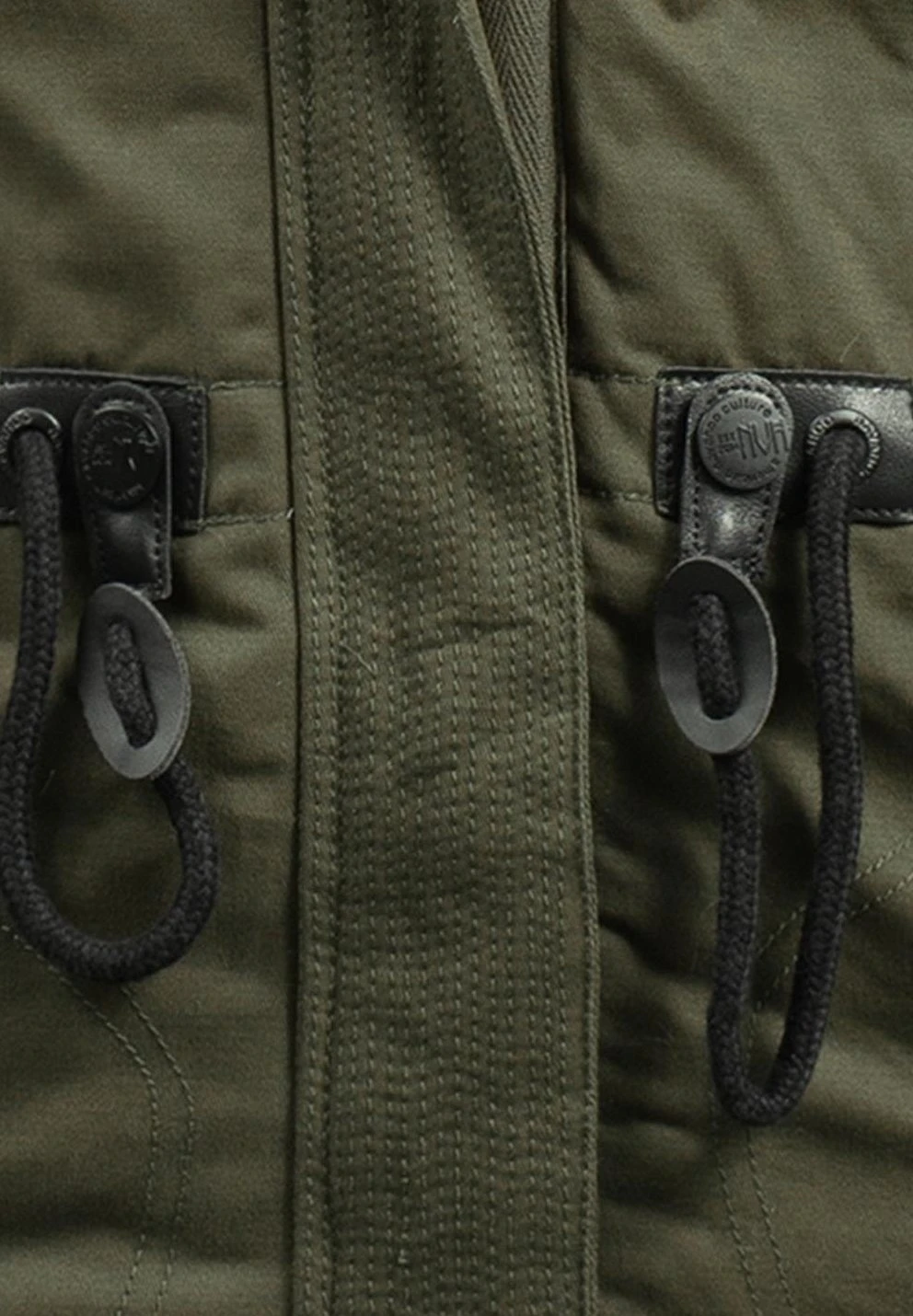 | Details capuchon | Tunnelkoord, afneembare imitatiebontkraag |
