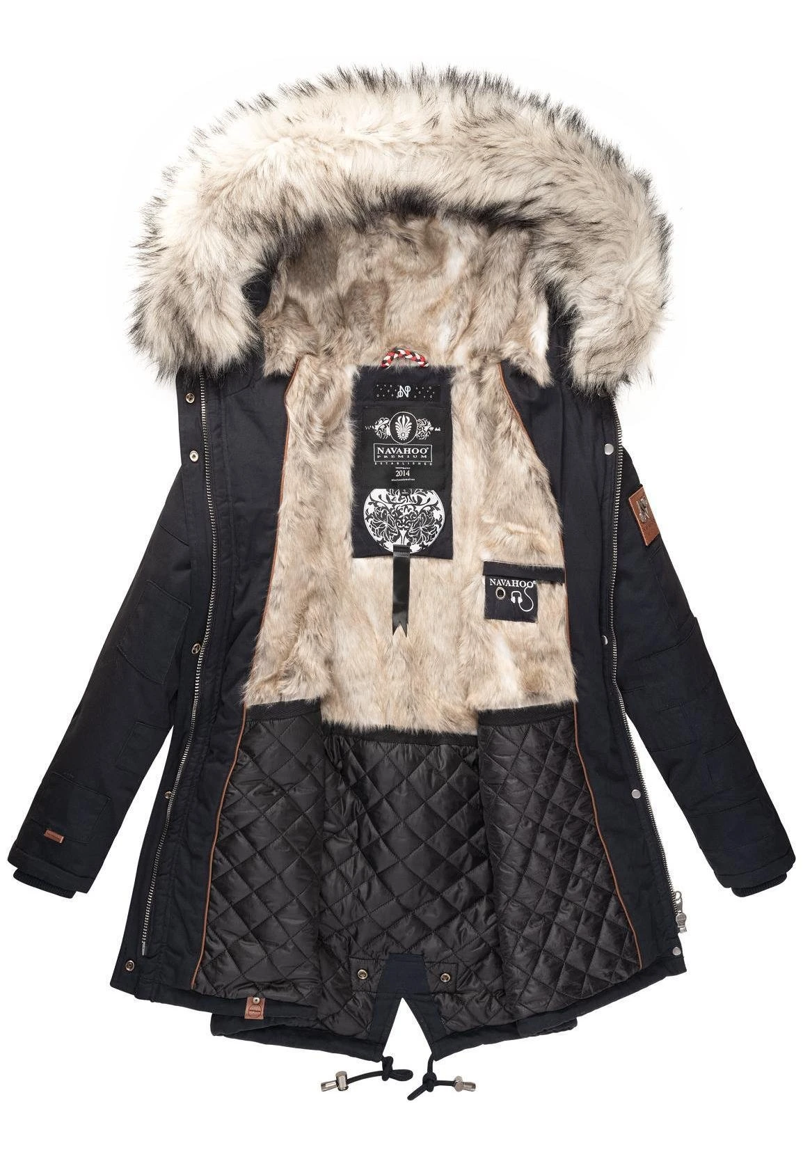 | Details capuchon | Tunnelkoord, gevoerd, afneembare imitatiebontkraag |